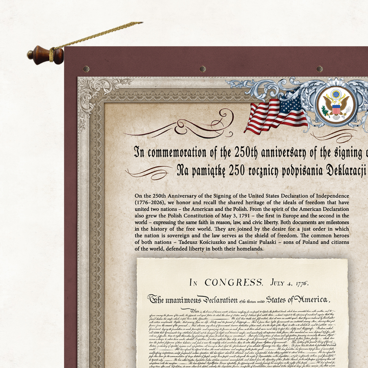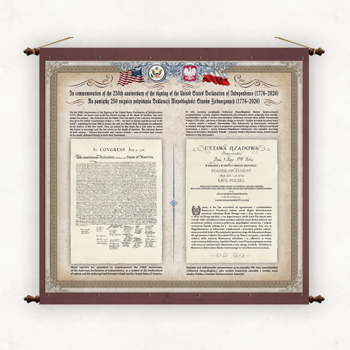 On the 250th Anniversary of the Signing of the United States Declaration of Independence (1776–2026), we honor and recall the shared heritage of the ideals of freedom that have united two nations – the American and the Polish.